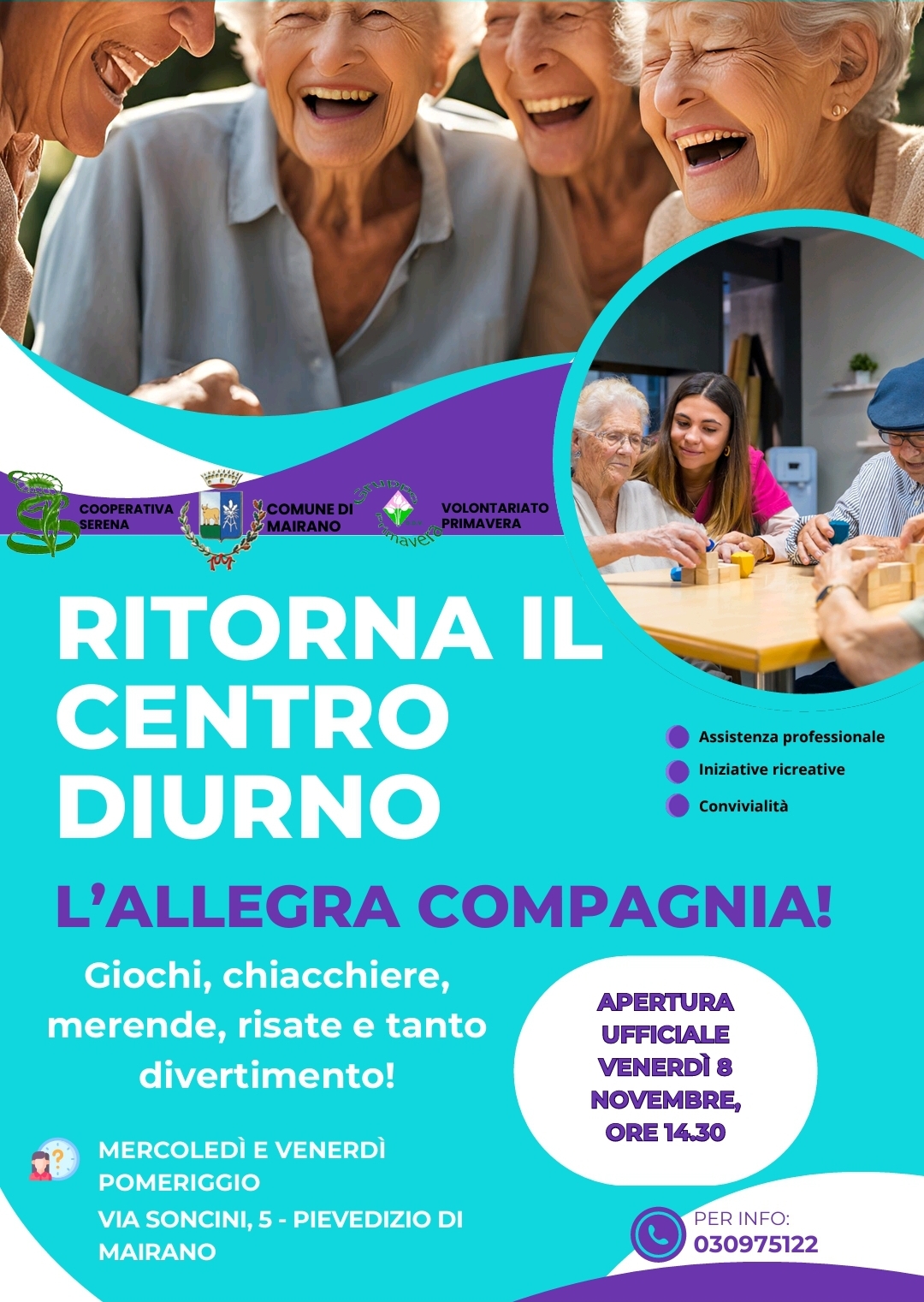 A partire dal 8 novembre 2024 riapre il Centro Diurno del Comune di Mairano L'allegra compagnia